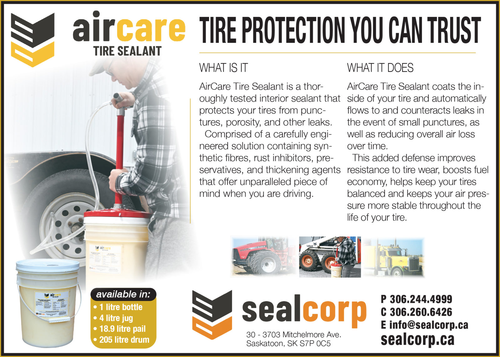 Rigorously tested and ready for the road, our line of high-quality sealant and conditioning products keeps your tires and wheels operating at their best and substantially extends their life – giving you total peace of mind, whether you’re hauling in your semi-trailer or heading out in your RV.
