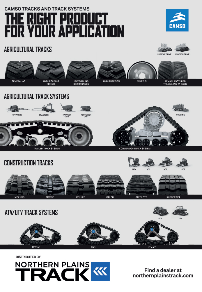 Advertisements Products and Services Agricultural Tracks Agricultural Track Systems Construction Tracks ATV / UTV Track Systems CAMSO CERTIFIED REMANUFACTURED TRACKS AND WHEELS CategoriesTracks, Tires, Lubricants & AdditivesTrack Systems